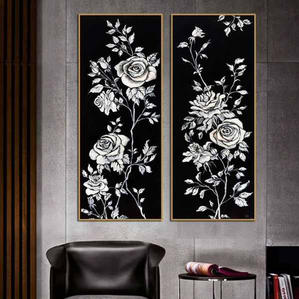 Phân loại và cấu tạo của Bộ 2 tranh cành hoa hồng đen trắng CV02224