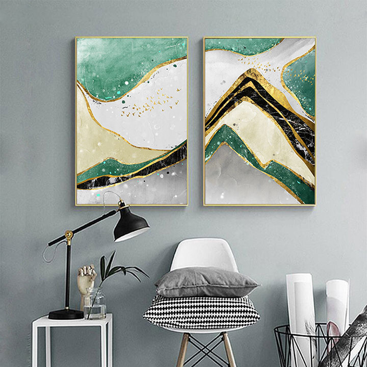 Phân loại và cấu tạo của Bộ 2 tranh ghép trừu tượng sắc xanh CV02584