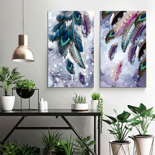 Bộ 2 tranh lông chim màu sắc CV02119 với hình ảnh mới lạ và cách phối màu nổi bật đem đến không gian hiện đại mới mẻ , tranh có thể treo trong không gian phòng khách hoặc văn phòng .