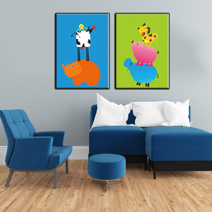 Bộ 2 tranh vẽ động vật ngộ nghĩnh CV02550 với hình ảnh vô cùng ngộ nghĩnh cùng màu sắc tươi sáng sẽ mang đến sự tươi vui cho không gian treo , tranh thích hợp treo trong không gian phòng khách hoặc phòng ngủ cho bé