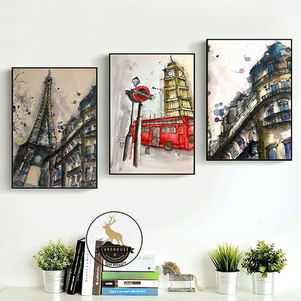 Đặc điểm nội bật của Bộ 3 tranh Canvas kỳ quan thế giới màu nước CVC0313