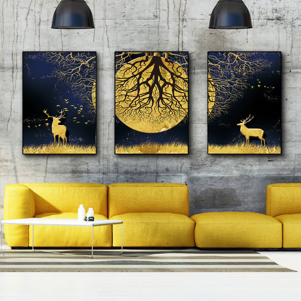 Đặc điểm nội bật của Bộ 3 tranh ghép trừu tượng hươu và mặt trăng vàng CV03926