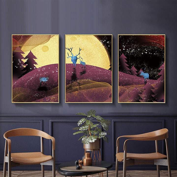 Phân loại và cấu tạo của Bộ 3 tranh ghép trừu tượng hươu xanh CV03846