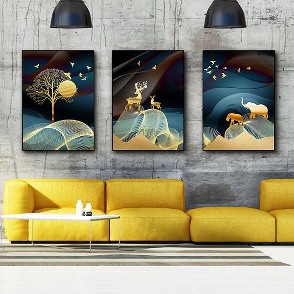 Đặc điểm nội bật của Bộ 3 tranh trừu tượng động vật sắc vàng CV03287