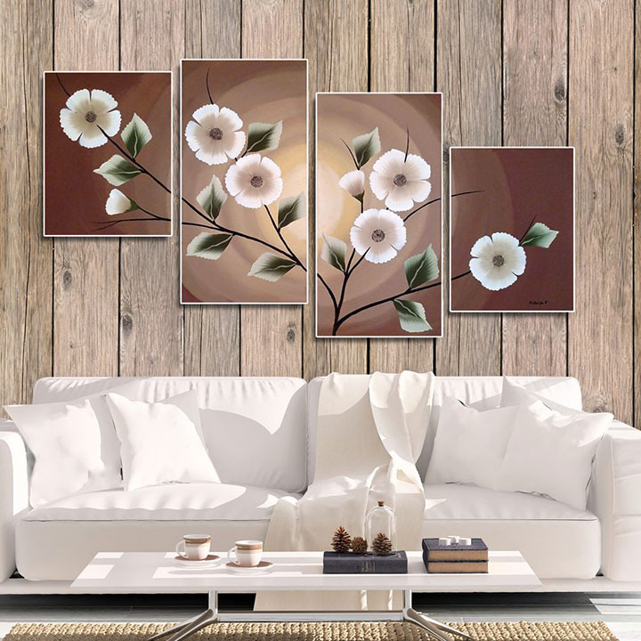 Đặc điểm nội bật của Bộ 4 tranh ghép cành hoa trắng MS04100