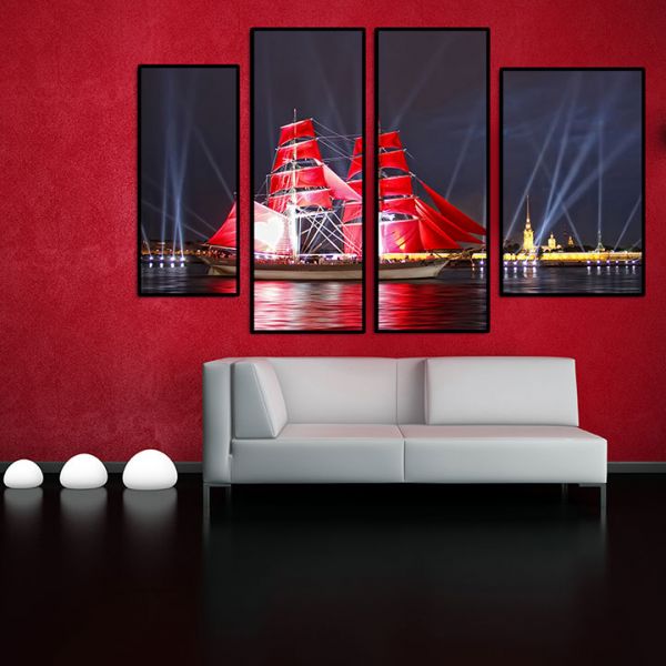 Bộ 4 tranh ghép thuyền buồm đỏ MS0447 với hình ảnh vô cùng nổi bật của con thuyền đỏ sẽ mang đến sự nổi bật đặc biệt cho không gian treo , tranh phù hợp treo trong không gian phòng khách