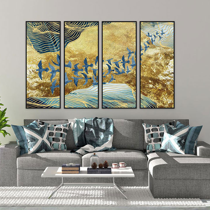 Đặc điểm nội bật của Bộ 4 tranh ghép trừu tượng đàn chim xanh MS04113