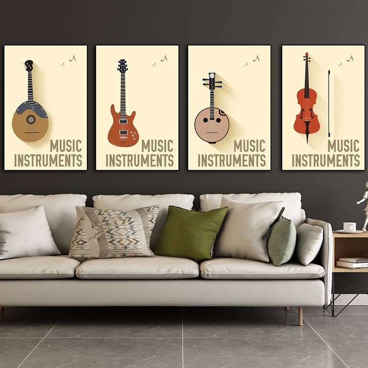 Bộ 4 tranh vẽ các loại đàn MS04122 với hình ảnh mới mẻ độc đáo sẽ mang đến điểm nhấn thú vị cho không gian treo , tranh thích hợp treo trong không gian phòng khách .
