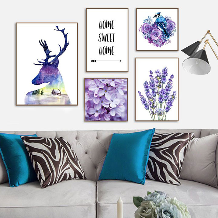 Bộ 5 tranh thiên nhiên động vật nghệ thuật MS0589 với hình ảnh nghệ thuật thiên nhiên động vật vô cùng độc đáo cùng gam màu tím mộng mơ ngọt ngào sẽ mang đến sự sinh động , tươi mới cho không gian treo , tranh thích hợp treo trong không gian phòng khách .