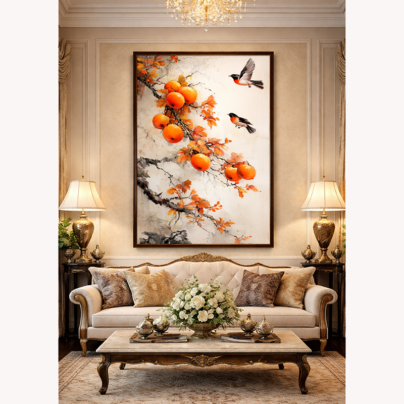 Tranh Cành Hồng Lộc là dòng tranh đẹp mang đậm ý nghĩa phong thủy, tượng trưng cho tài lộc – phú quý – sung túc, rất được ưa chuộng để trang trí nhà cửa mỗi dịp đầu năm mới. Hình ảnh cành hồng trĩu quả vươn mình trong không gian khoáng đạt tạo cảm giác ấm áp, an yên và thịnh vượng cho gia đình.