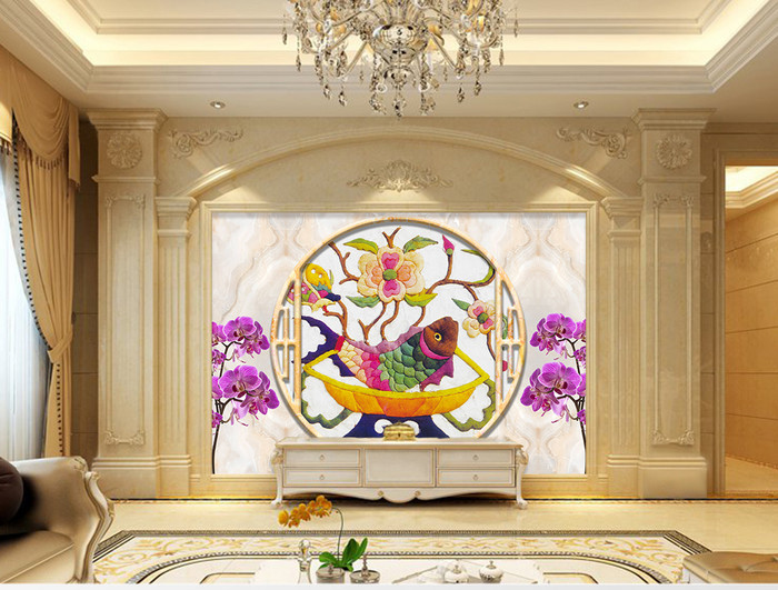 Tranh dán tường 3D cá chép sắc màu TDT895