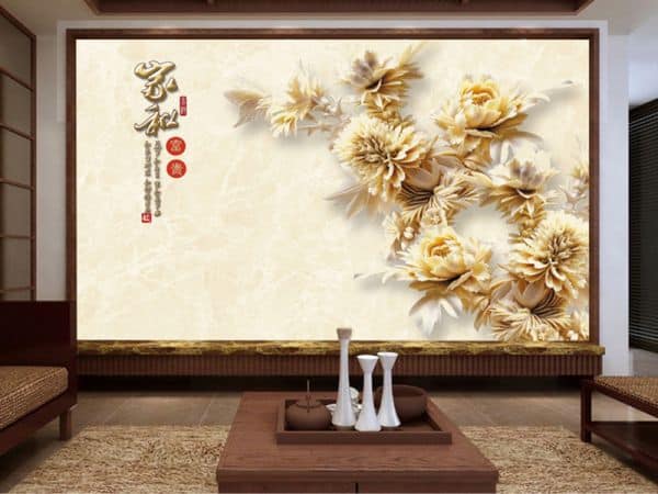 Tranh dán tường 3D hoa mẫu đơn vàng TDT605 với hình ảnh 3D hoa mẫu đơn vàng vô cùng sinh động cùng màu sắc trang nhã sẽ giúp không gian của bạn trở nên sang trọng , quý phái hơn . Tranh thích hợp với không gian phòng khách