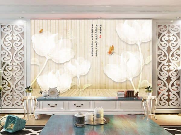 Tranh dán tường 3D hoa trắng và bướm vàng TDT443 với hình ảnh trừu tượng vô cùng sinh động cùng màu sắc nhẹ nhàng sẽ biến không gian của bạn trở nên sống động hơn . Tranh thích hợp với không gian phòng khách