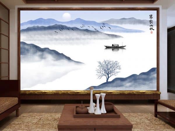 Tranh dán tường trừu tượng núi sông và con thuyền Trung Quốc TDT307 với hình ảnh thiên nhiên sông nước quen thuộc cùng màu sắc đơn giản đem đến sự nhẹ nhàng thoải mái cho không gian nhà bạn . Tranh phù hợp cho không gian phòng khách