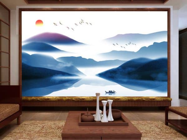Tranh dán tường trừu tượng sông núi và con thuyền TDT318 với hình ảnh thiên nhiên trừu tượng cùng màu sắc huyền bí mờ ảo mang đến chiều sâu cùng sự mới mẻ cho không gian nhà bạn . Tranh phù hợp cho không gian phòng khách