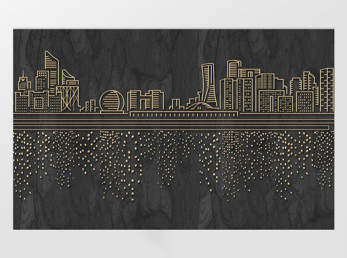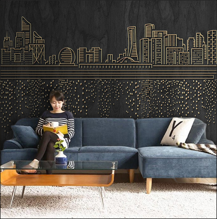 Tranh dán tường trừu tượng thành phố ánh vàng TDT650