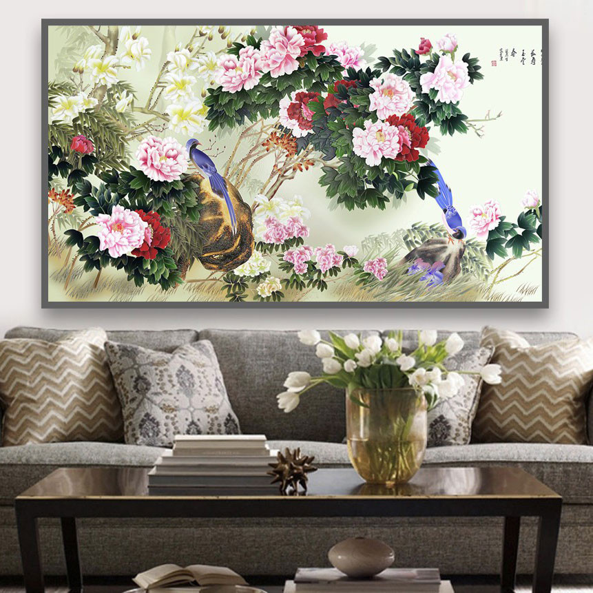 Phân loại và cấu tạo của Tranh đơn hoa mẫu đơn và chim xanh CV01062