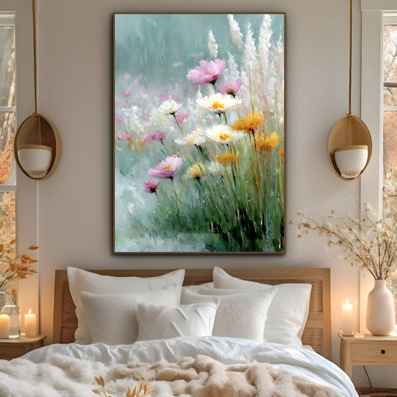 Chủ đề tranh hoa thiên nhiên: Hình ảnh hoa cỏ mềm mại, tự nhiên, tạo cảm giác yên bình và dễ chịu.