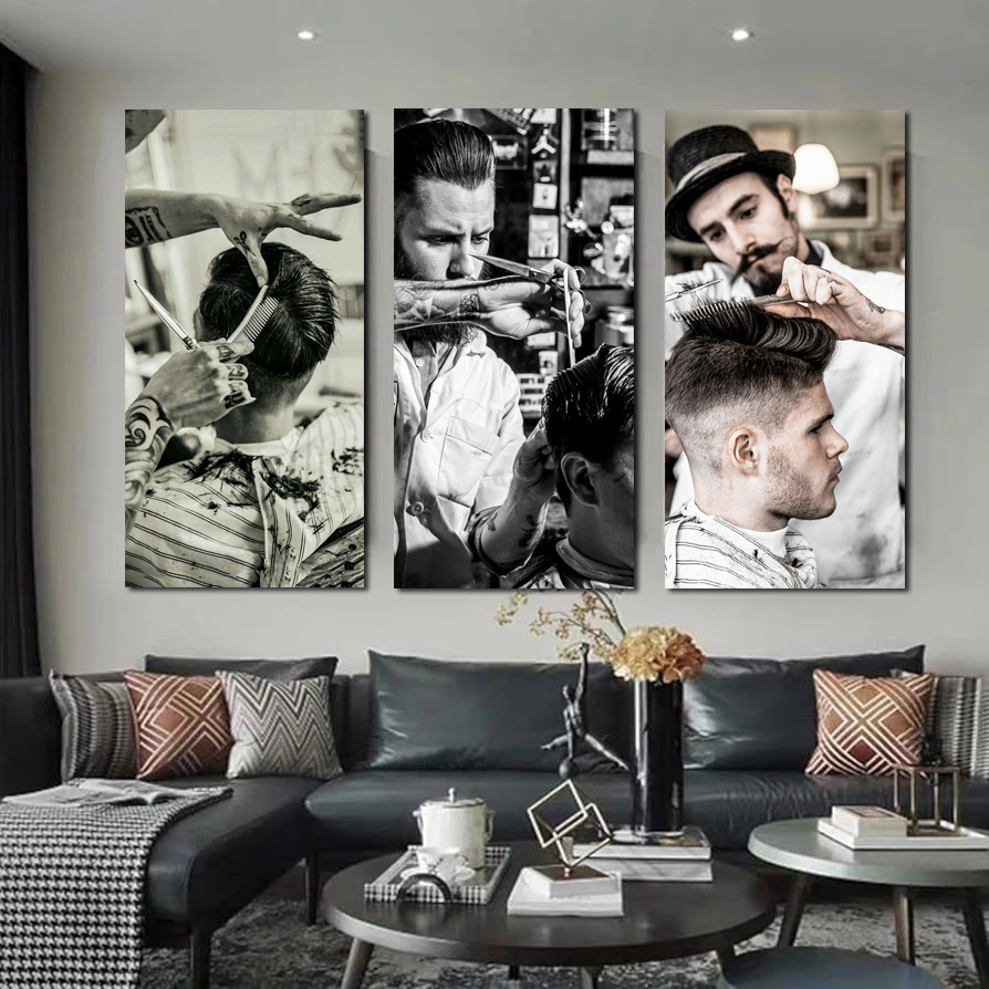 Bộ 3 tranh salon tóc là lựa chọn hoàn hảo cho các tiệm cắt tóc nam, barber shop, salon tóc chuyên nghiệp hoặc không gian sống phong cách hiện đại. Thiết kế mang đậm chất nghệ thuật với những khoảnh khắc chân thật trong quá trình tạo kiểu tóc, bộ tranh giúp tôn lên sự chỉn chu, tinh tế và chuyên nghiệp của không gian.