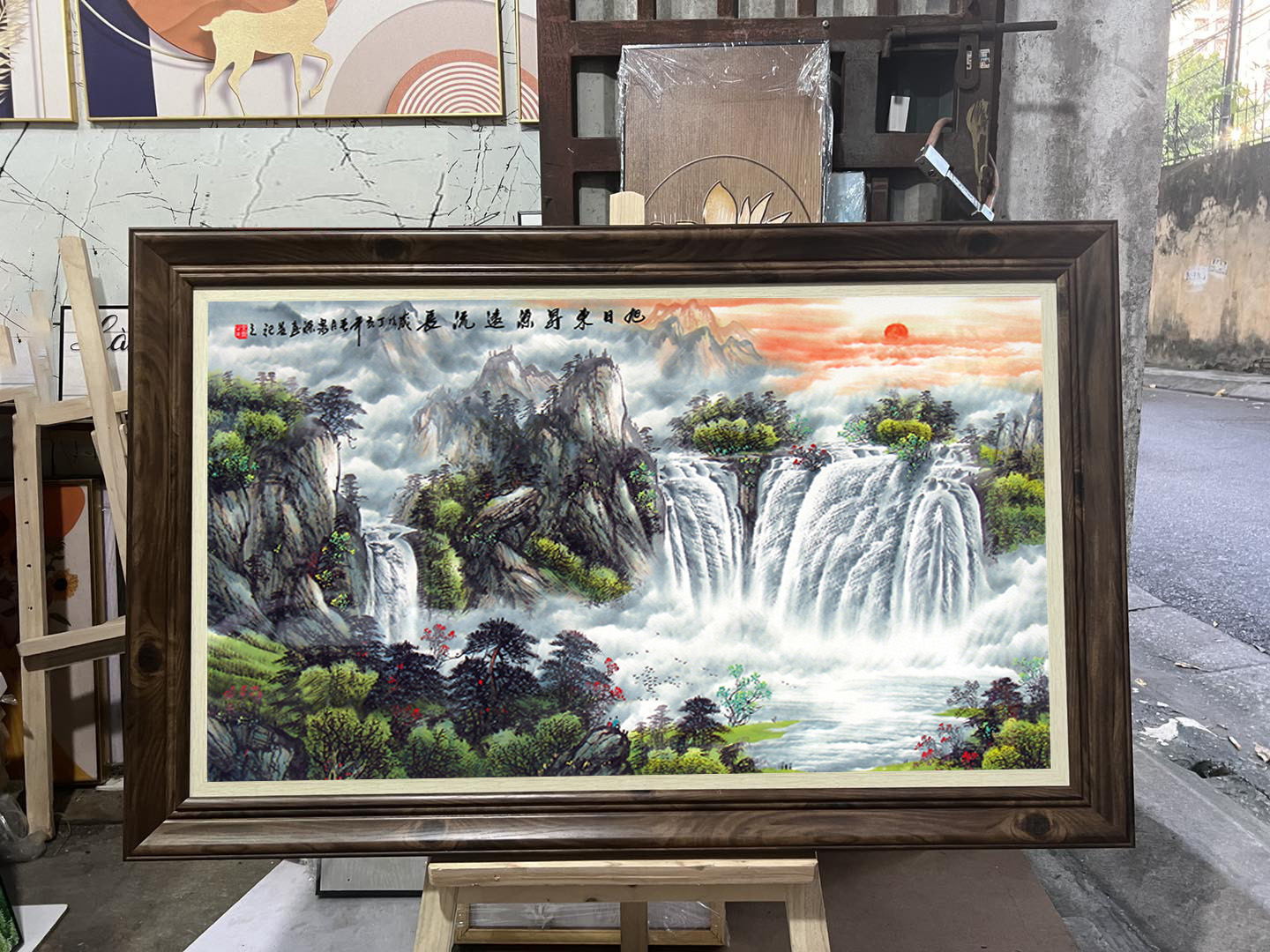 Tranh sơn thủy non nước PTR0132 là bức tranh chứa đựng ý nghĩa của khí tiết thanh cao, trí tuệ sáng suốt, thể hiện biểu tượng của sự trường thọ và gắn bó vững bền vĩnh cửu. Đất trời mây núi hòa vào làm một tạo nên một phong cảnh đẹp tựa chốn bồng lai