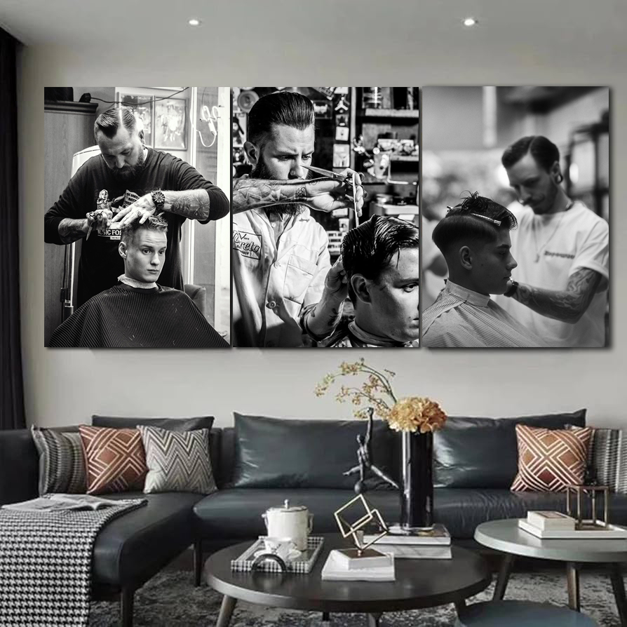 Bộ 3 tranh salon tóc là lựa chọn hoàn hảo cho các tiệm cắt tóc nam, barber shop, salon tóc chuyên nghiệp hoặc không gian sống phong cách hiện đại. Thiết kế mang đậm chất nghệ thuật với những khoảnh khắc chân thật trong quá trình tạo kiểu tóc, bộ tranh giúp tôn lên sự chỉn chu, tinh tế và chuyên nghiệp của không gian.