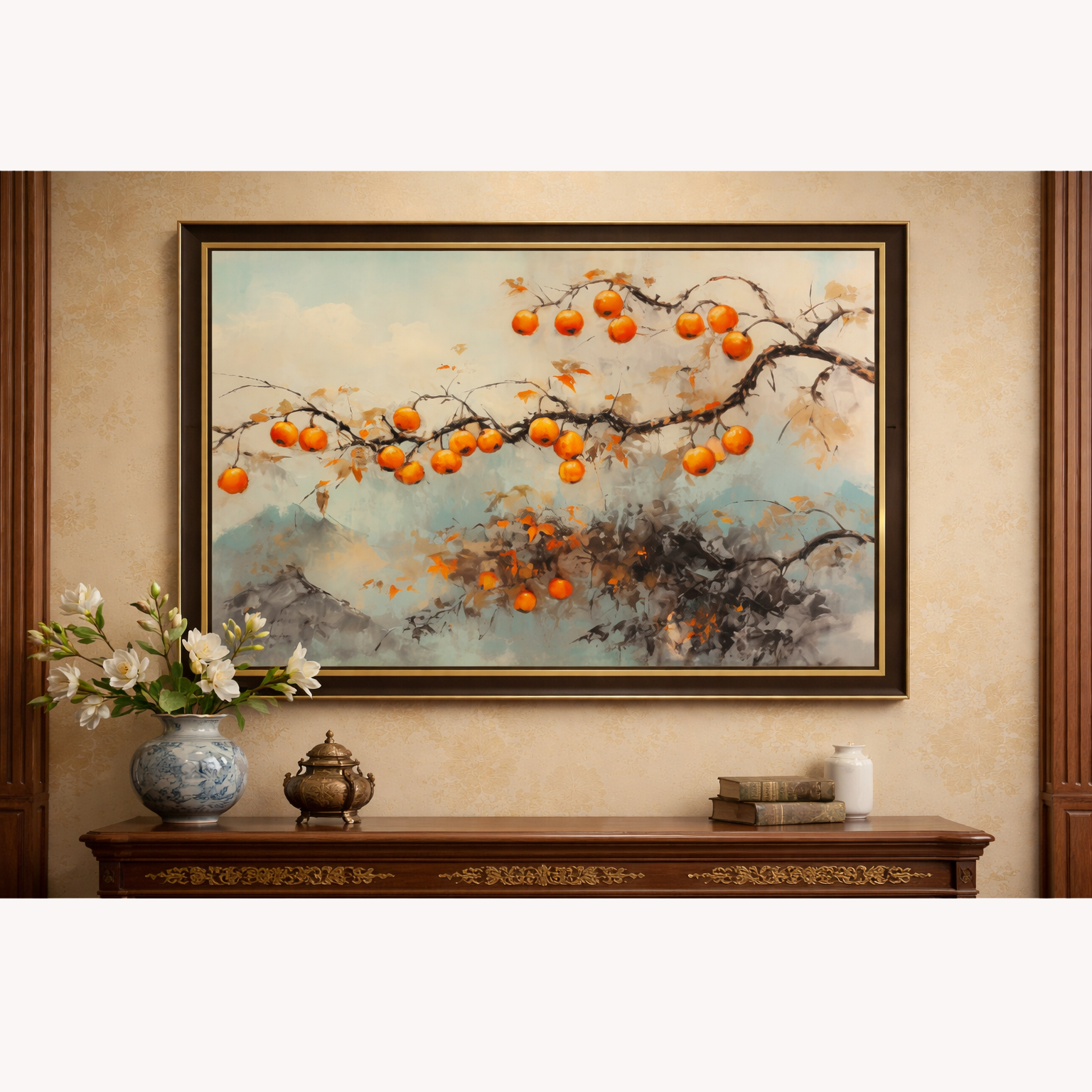 Tranh Treo Tường Khổ Lớn Hồng Đào VHV0103 – Điểm Nhấn Sang Trọng Cho Không Gian Sống