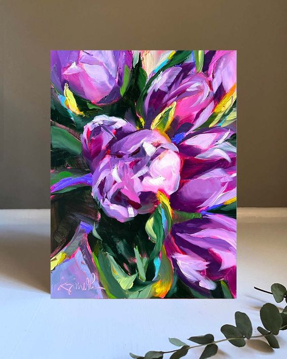 Đặc điểm nội bật của Tranh vẽ sơn dầu trên vải hoa tulip tím PTR0138